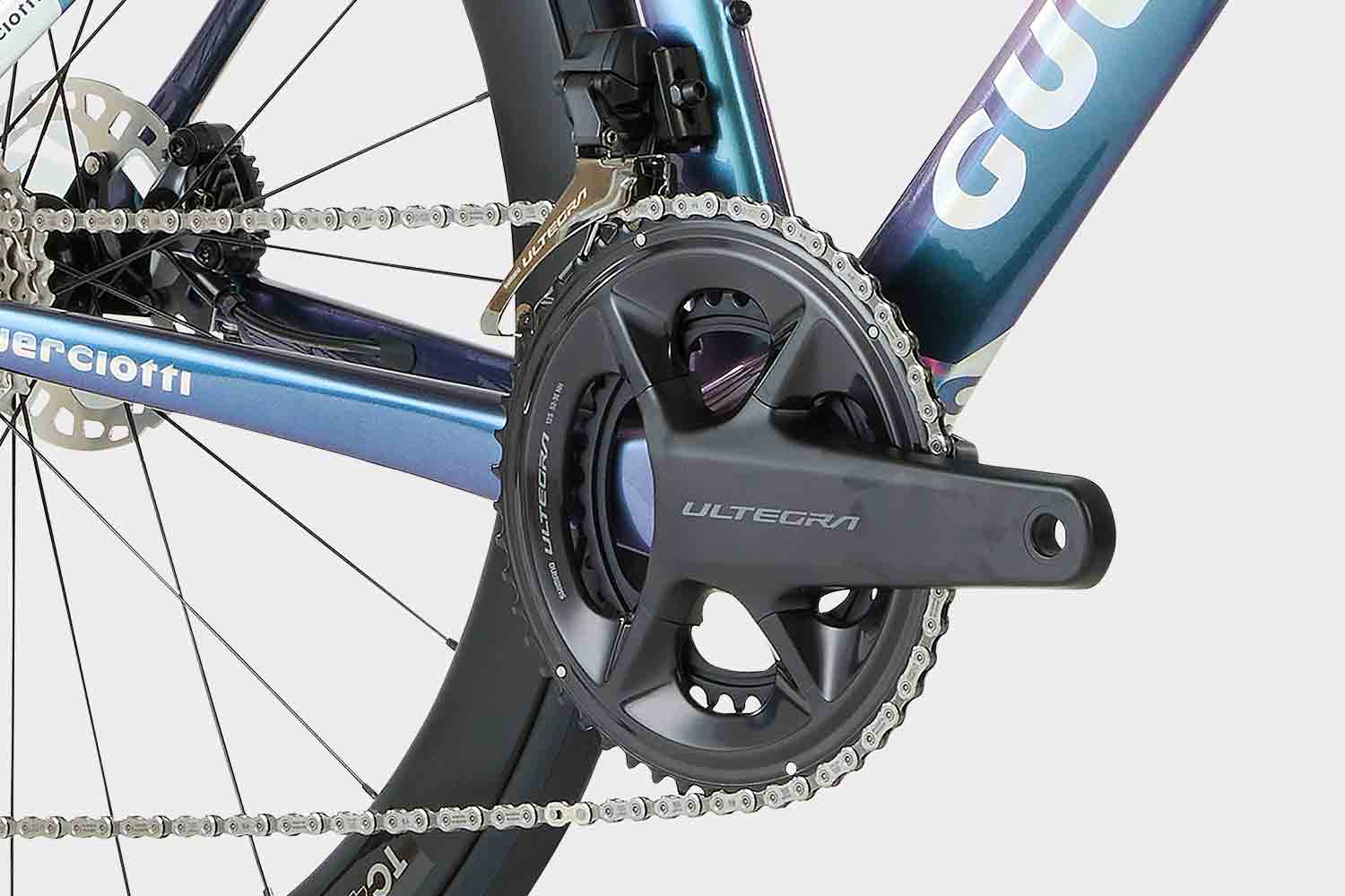 Disponibile con gruppo Shimano Ultegra o 105 elettronici che assicurano una cambiata precisa anche in fase di spinta.